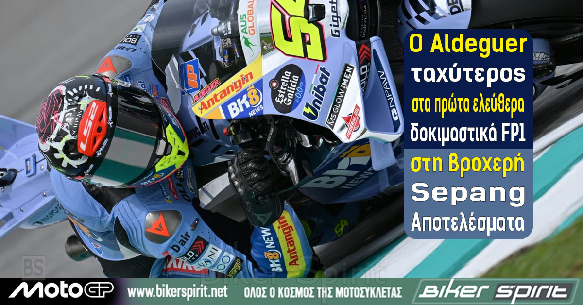 Ο Fermin Aldeguer ταχύτερος στα πρώτα ελεύθερα δοκιμαστικά FP1 στη βροχερή Sepang – Αποτελέσματα