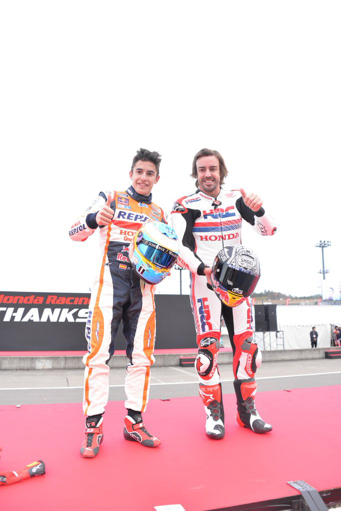 Όπως βλέπουμε και στις εικόνες ο πιλότος της Φόρμουλα 1 έχει άριστες σχέσεις με τον Marc Márquez και αφού αντάλλαξαν απόψεις για την οδήγηση της Honda RC213V αλλά και του πρωτότυπου Supercar της Honda το NSX Concept Honda Gt, φωτογραφήθηκαν μαζί.