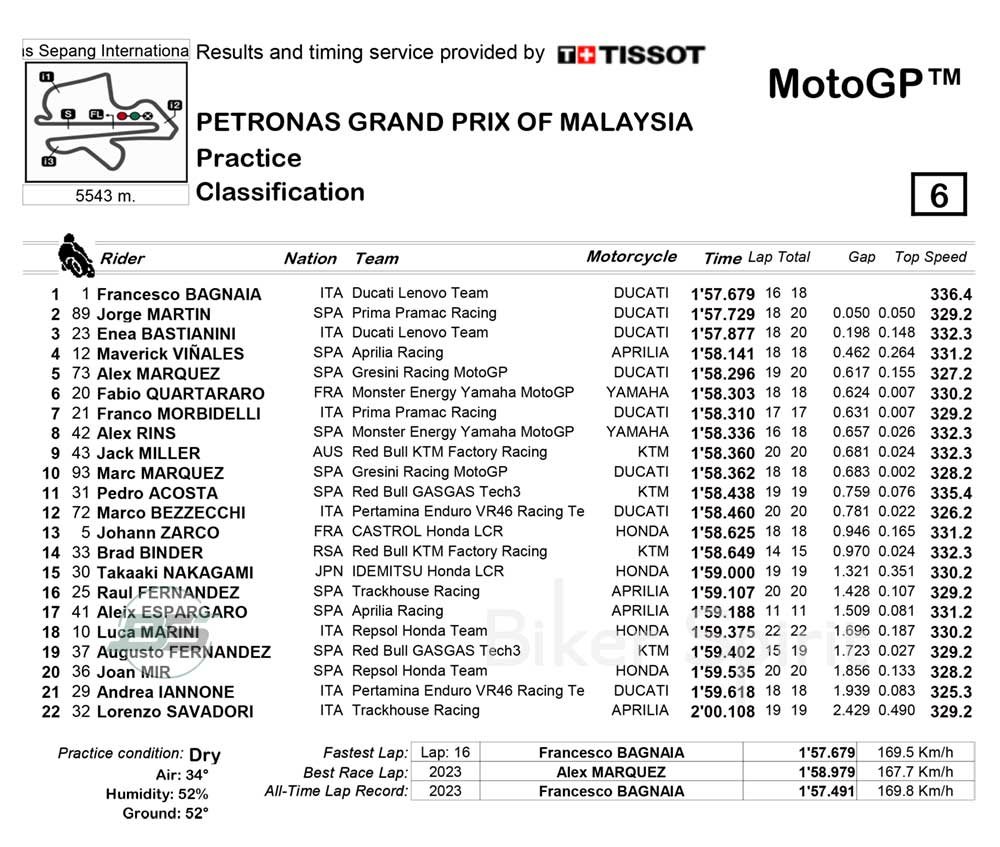 Ο Francesco Bagnaia ταχύτερος στο PRACTICE στο Sepang – Ποιοι οδηγοί περνούν στο Q2 – Αποτελέσματα