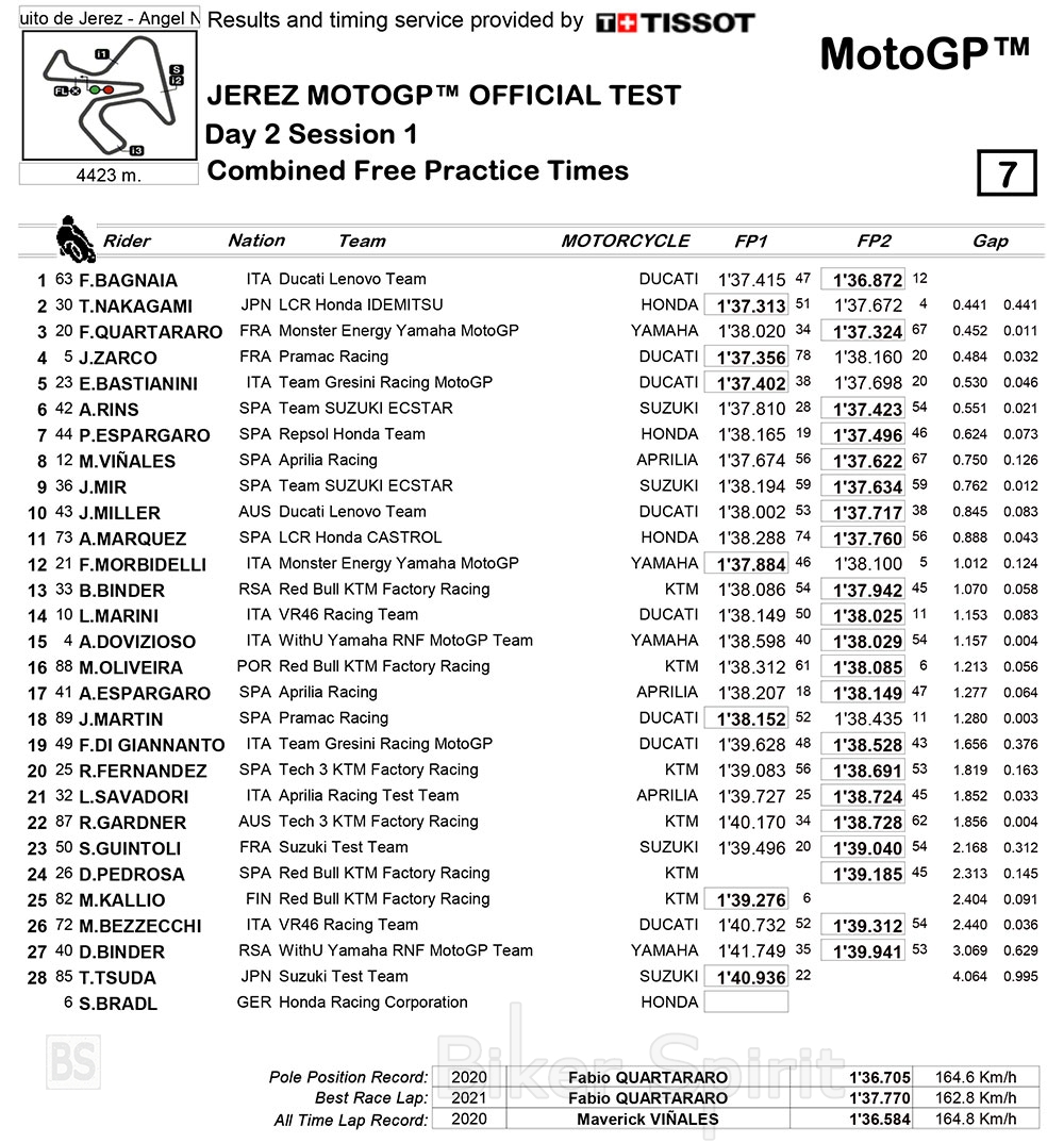 Στην πίστα της Jerez, τέλειωσε και η δεύτερη ημέρα των επίσημη δοκιμών και τέλειωσε και η δουλειά που έκαναν οι αναβάτες και ομάδες με σκοπό το 2022.