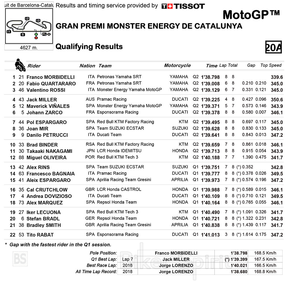 Ο Morbidelli, με χρόνο κοντά στο ρεκόρ πίστας, 1.38.798 που έκανε στον τελευταίο γύρο, κέρδισε τη πρώτη του pole δείχνοντας την καλή του κατάσταση.