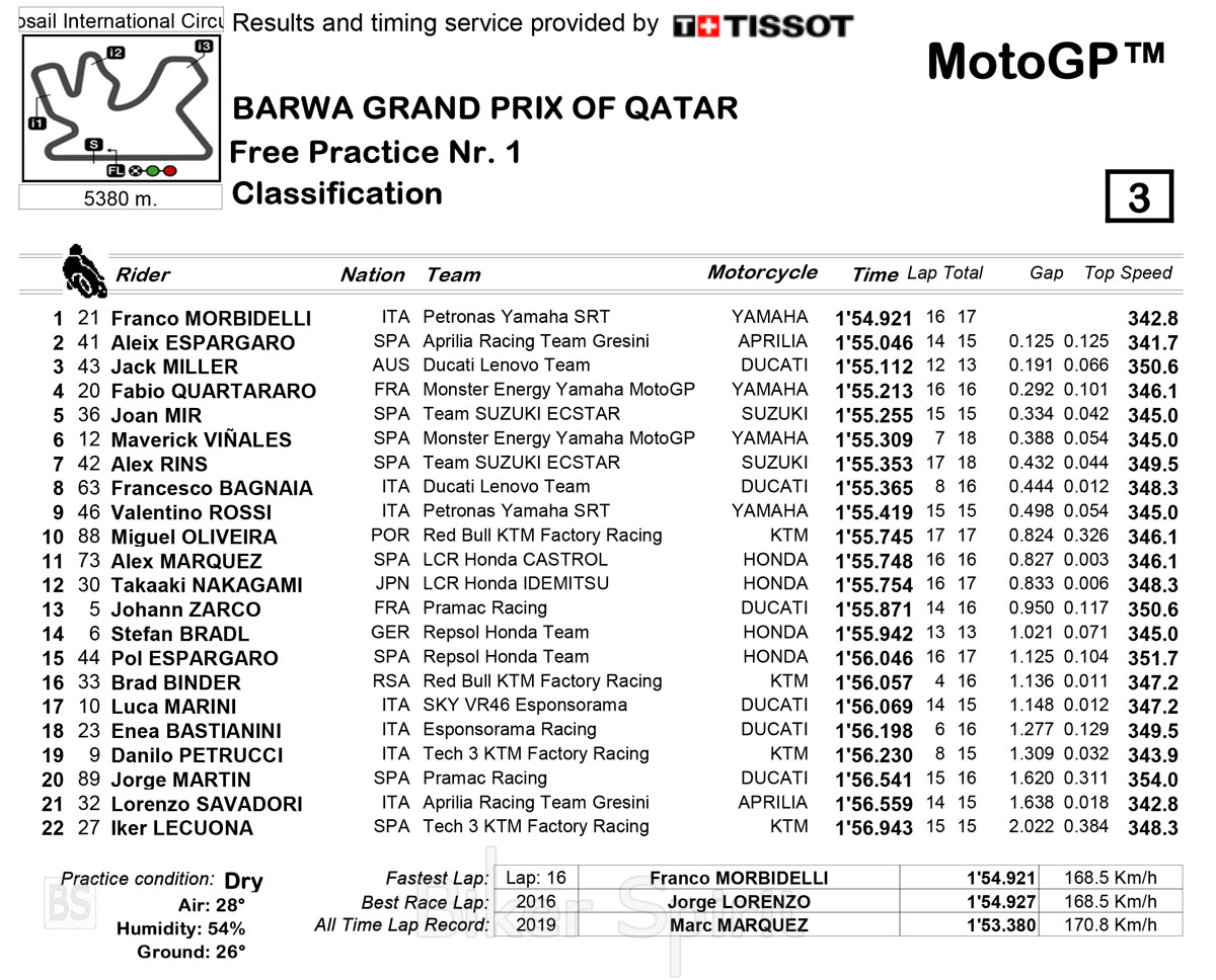 Ο Franco Morbidelli ταχύτερος στο FP1 στο Qatar – Χρόνοι και αποτελέσματα