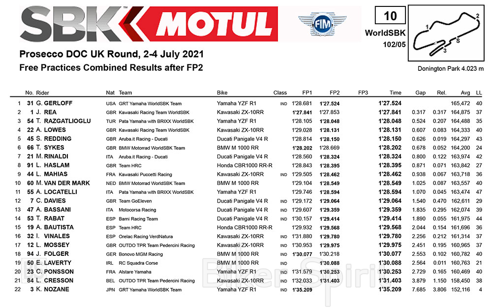 Ο Garrett Gerloff (GRT Yamaha WorldSBK Team) σταμάτησε το χρονόμετρο στο 1’27.524, στο FP2, μπροστά από τον Jonathan Rea (Kawasaki Racing Team WorldSBK) και τον Toprak Razgatlioglu (Pata Yamaha με το BRIXX WorldSBK) που έκλεισε την πρώτη τριάδα της ημέρας!