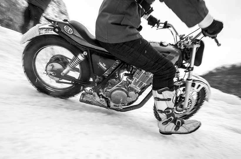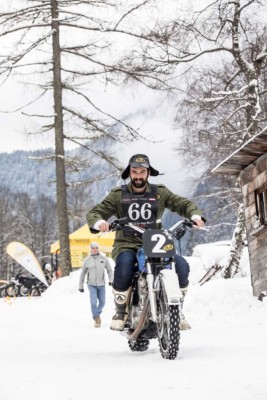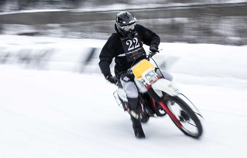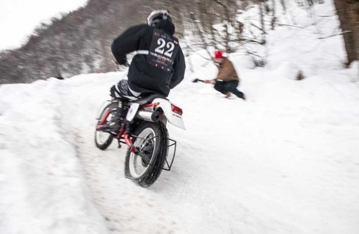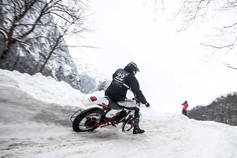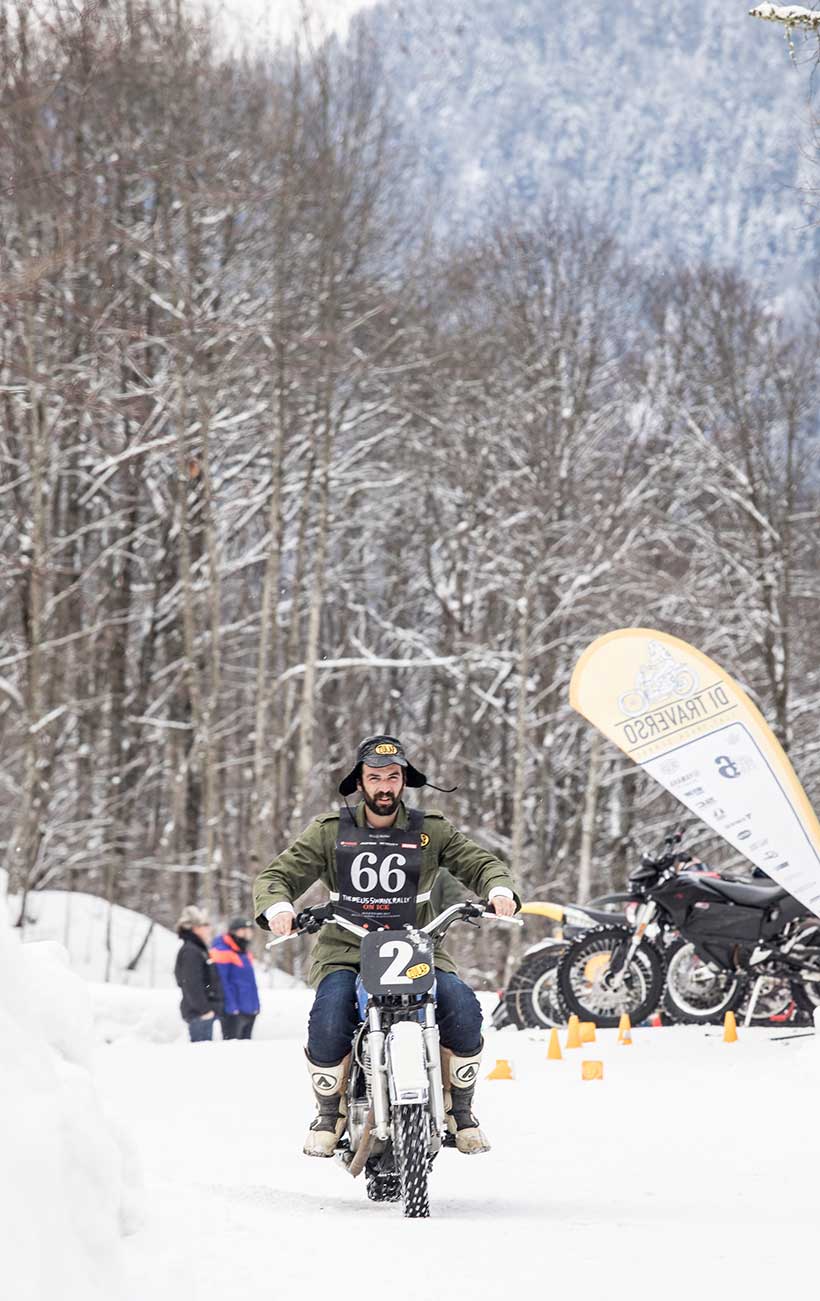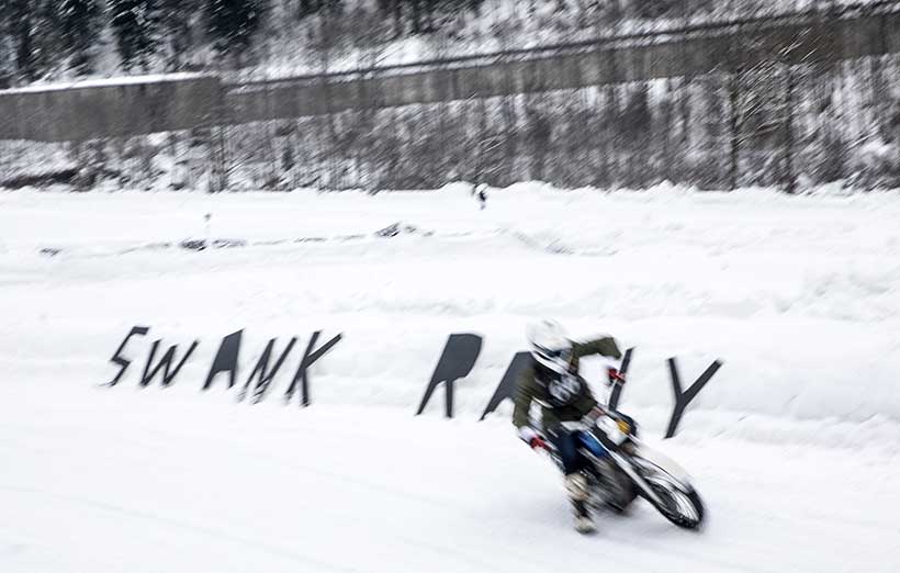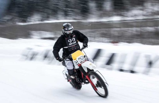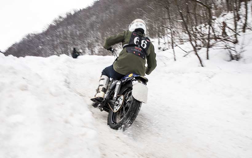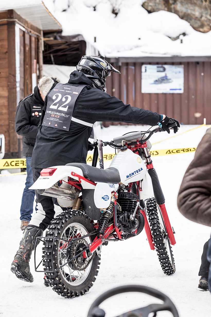 Ενα ζευγάρι χιονολάστιχα με καρφιά φτιαγμένα στο χέρι και ένα Montesa H7 360cc του ’82 έδωσαν τη νίκη στον Έλληνα αναβάτη στο Swank Rally On Ice πάνω στις ιταλικές Άλπεις.