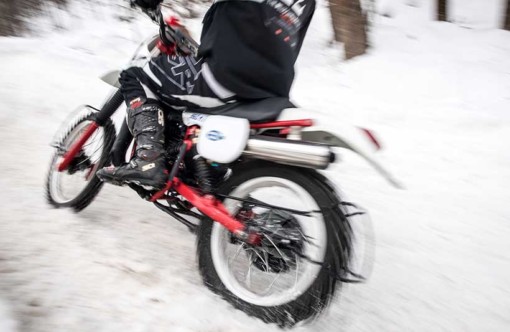 Γιάννης Τρίγκας: “Είχαμε λάβει μόλις πριν μια βδομάδα την επιβεβαίωση της συμμετοχής μας στο Swank Rally On Ice από τους Deus, δανειστήκαμε ένα ζευγάρι χιονολάστιχα με καρφιά φτιαγμένα στο χέρι από τον Χρήστο στο MX House στα Γρεβενά, ο φίλος Βασίλης Βράκας στα Τρίκαλα μας προσάρμοσε στο Montesa τους αναγκαίους -από τον ειδικό κανονισμό του event- προφυλακτήρες μιας και τα καρφιά έχουν την τάση να ξεκολλάνε από τα λάστιχα και να εκσφενδονίζονται φυγοκεντρικά και ανεξέλεγκτα. Θεωρητικά ήμασταν ready to race. Θεωρητικά…”, μας είπε ο Γιάννης Τρίγκας.”