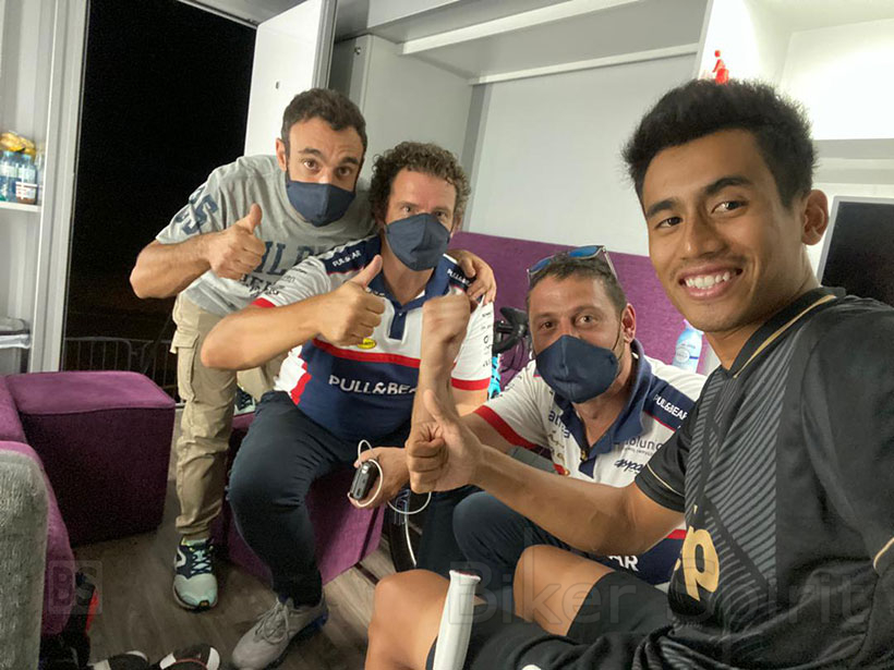 Ένα από τα καλά νέα μετά την τρομακτική πτώση στην Moto2 την Κυριακή ήταν ότι ο Hafizh Syahrin δεν τραυματίστηκε σοβαρά . Ο Μαλαισιανός αναβάτης, ο οποίος έπεσε πάνω στην μοτοσυκλέτα του Bastianini μετά από την πτώση του Ιταλού, έχει σαφώς ακόμα πολλούς πόνους, αλλά κάνει τα πρώτα του βήματα με πατερίτσες.