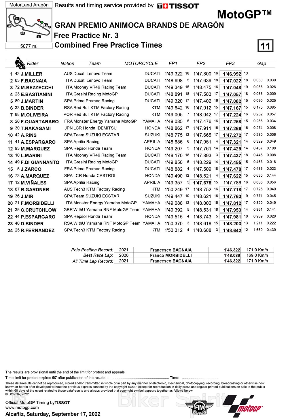 Κυριαρχία της Ducati στο Aragon, με τον Jack Miller να πετυχαίνει την καλύτερη επίδοση της τρίτης περιόδου ελεύθερων δοκιμών του Grand Prix του Aragon, για το 15ο γύρο του MotoGP 2022.