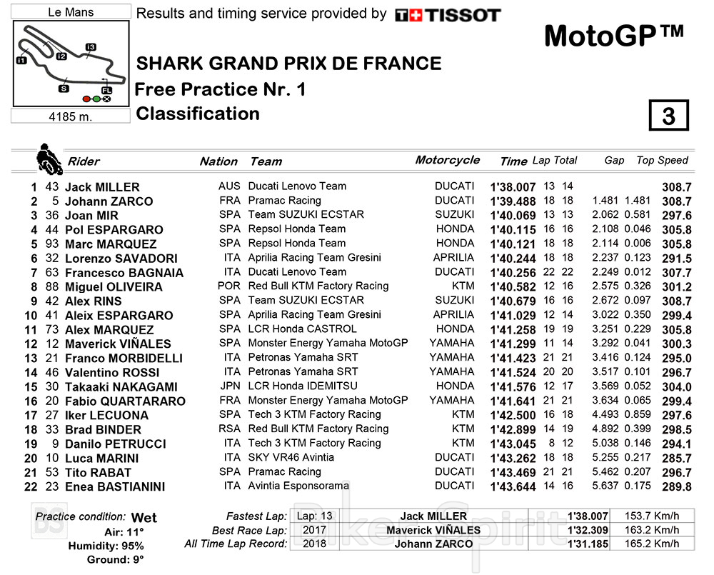 Ο Jack Miller τόλμησε να βάλει slicks και ήταν ο ταχύτερος του FP1 στο βρεγμένο Le Mans