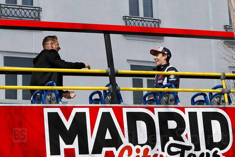 Πριν ταξιδέψει στην Αργεντινή, σε μια από τις πολλές συνεντεύξεις που θα δώσει ο Marc Márquez καθ ‘όλη τη διάρκεια της σεζόν, συνάντησε τον αστέρα της Real Betis, Joaquín Sánchez, ο οποίος του έκανε έκπληξη, αφού ο Marquez περίμενε να συναντήσει ένα δημοσιογράφος σε ένα από τα τουριστικά λεωφορεία στη Μαδρίτη, βρήκε αντ ‘αυτού τον Joaquín εκεί.