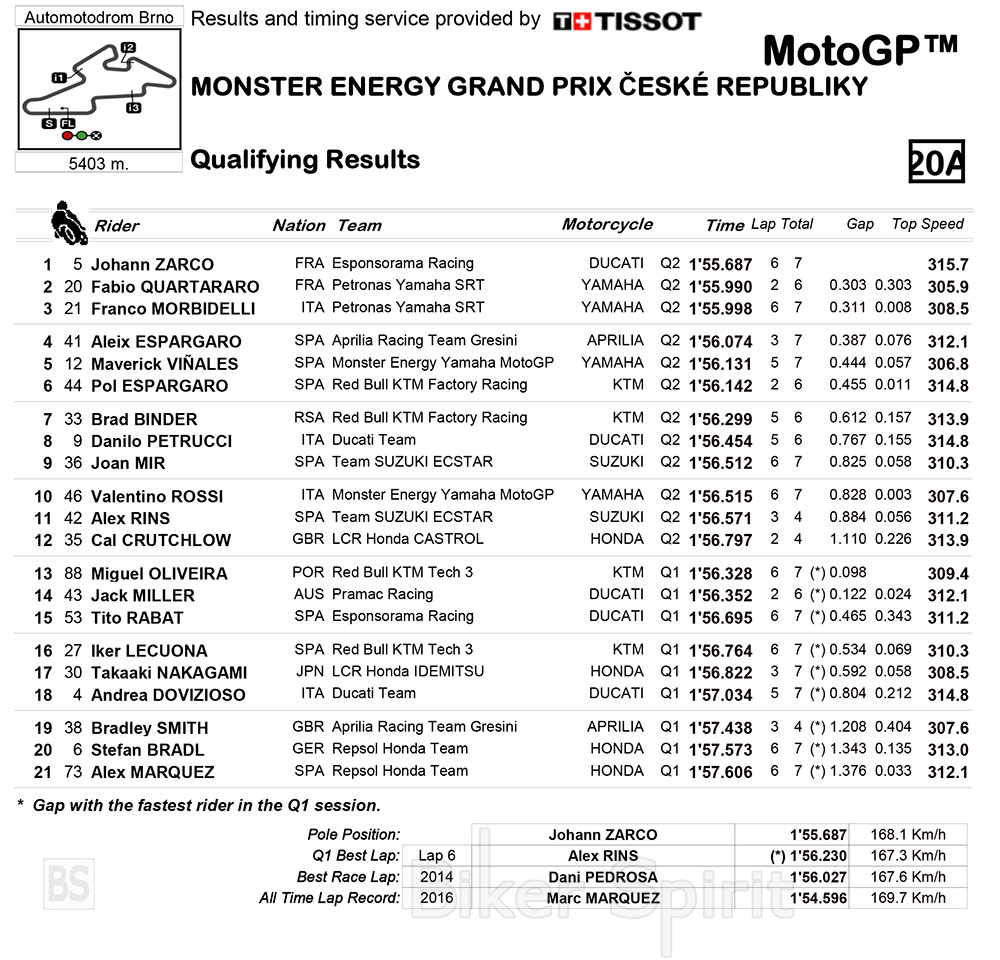 Ο Johan Zarco κέρδισε την τέταρτη pole position της καριέρας του στην μεγάλη κατηγορία και το έκανε εδώ στο Brno με χρόνο 1.55.687 που έκανε στον προτελευταίο του γύρο!