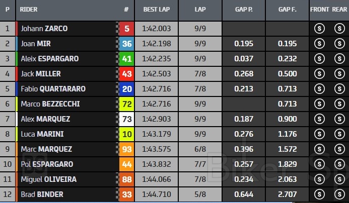 Με την πίστα να έχει στεγνώσει, όλοι βγήκαν με σλικ ελαστικά και ήταν ο Johan Zarco που κέρδισε την Pole position σταματώντας το χρονόμετρο στο 1.42.003 και θα ξεκινήσει από την κορυφη για τον αυριανό αγώνα!