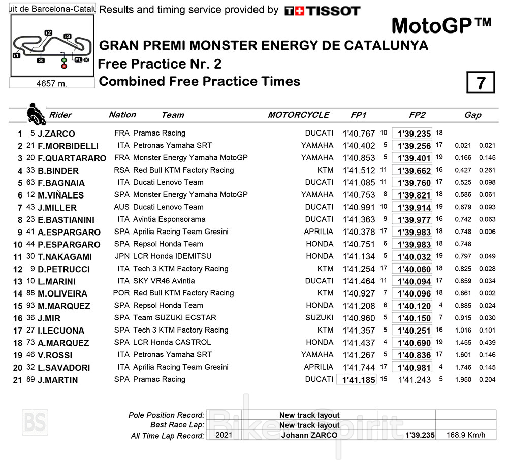 Ο Johann Zarco έγραψε τον καλύτερο χρόνο στα δευτερά ελευθέρα δοκιμαστικά FP2 του Grand Prix της Catalunya, για τον έβδομο γύρο του Παγκοσμίου Πρωταθλήματος MotoGP 2021