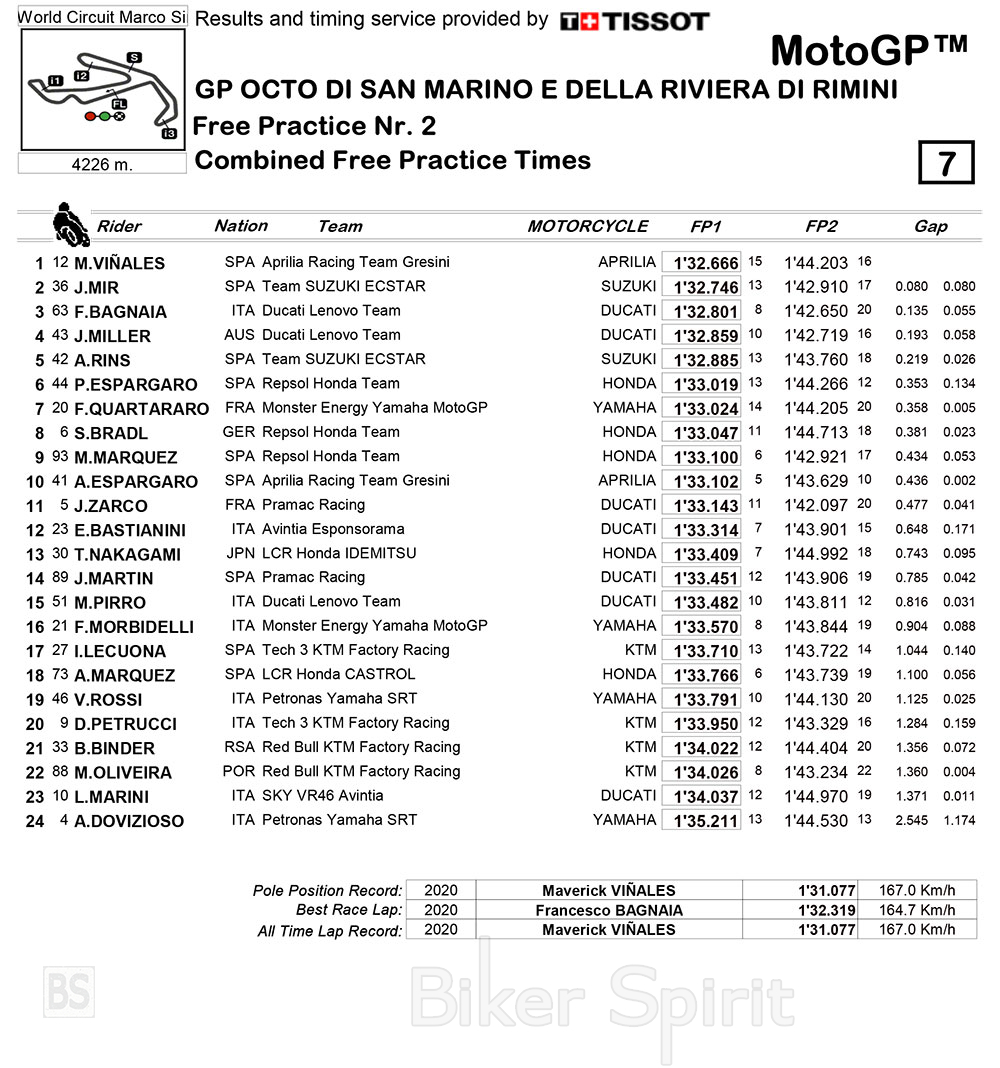 Έτσι στο προσωρινό Q2 περνούν οι 10 πρώτοι οδηγοί από το FP1 που είναι οι : Maverick Vinales, Joan Mir, Francesco Bagnaia, Jack Miller, Alex Rins, Pol Espargarò, Fabio Quartararo, Stefan Bradl, Marc Marquez και Aleix Espargarò.