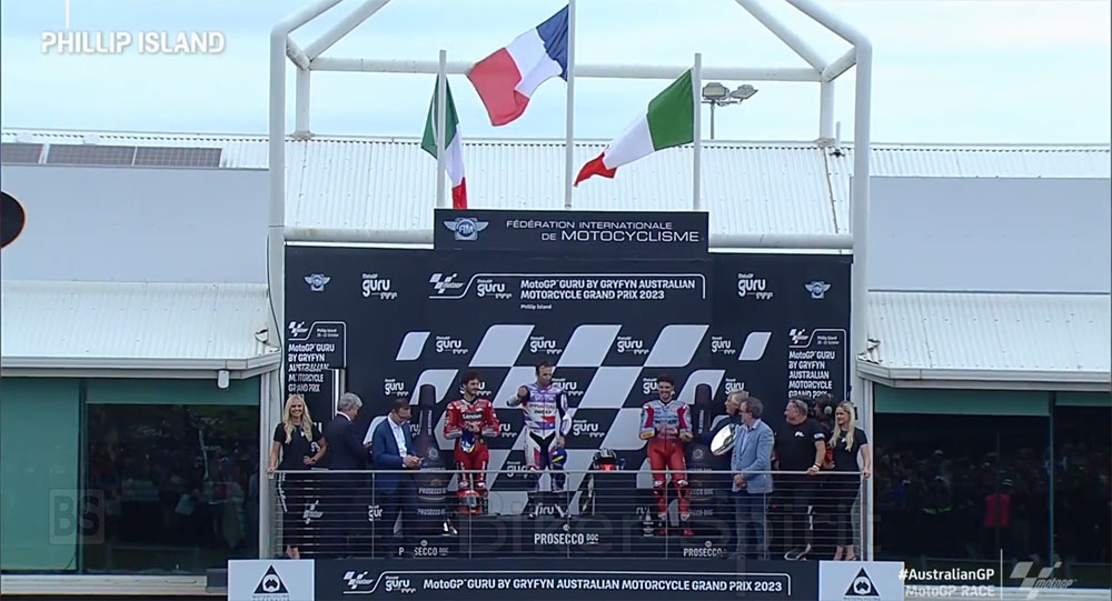 Στην 2η θέση του βάθρου ανέβηκε ο Pecco Bagnaia που σχεδόν μέχρι το τέλος του αγώνα ήταν εκτός βάθρου κατάφερε στον τέλος να περάσει και να φτάσει στην 2η θέση και να τερματίσει μόλις 0.201s πίσω από τον νικητή, ανοίγοντας την διαφορά του στους 26 βαθμούς από τον δεύτερο Martin!