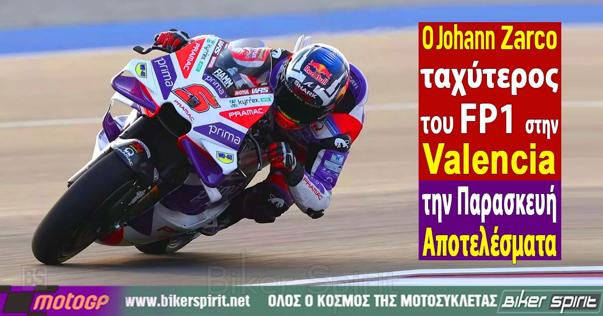 Ο Johann Zarco ταχύτερος στο FP1 την Παρασκευή στην Valencia – Αποτελέσματα