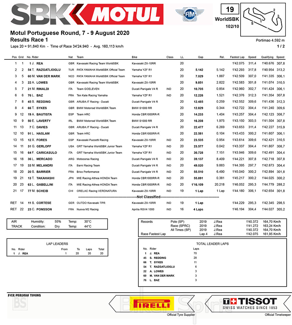 Το κορυφαία δεκάδα έκλεισε ο Eugene LAVERTY με το 2ο BMW S1000 RR , μπροστά από το 2ο εργοστασιακό Ducati Panigale V4 R του Chaz DAVIES και το 2ο Honda CBR1000RR-R με τον Leon HASLAM.