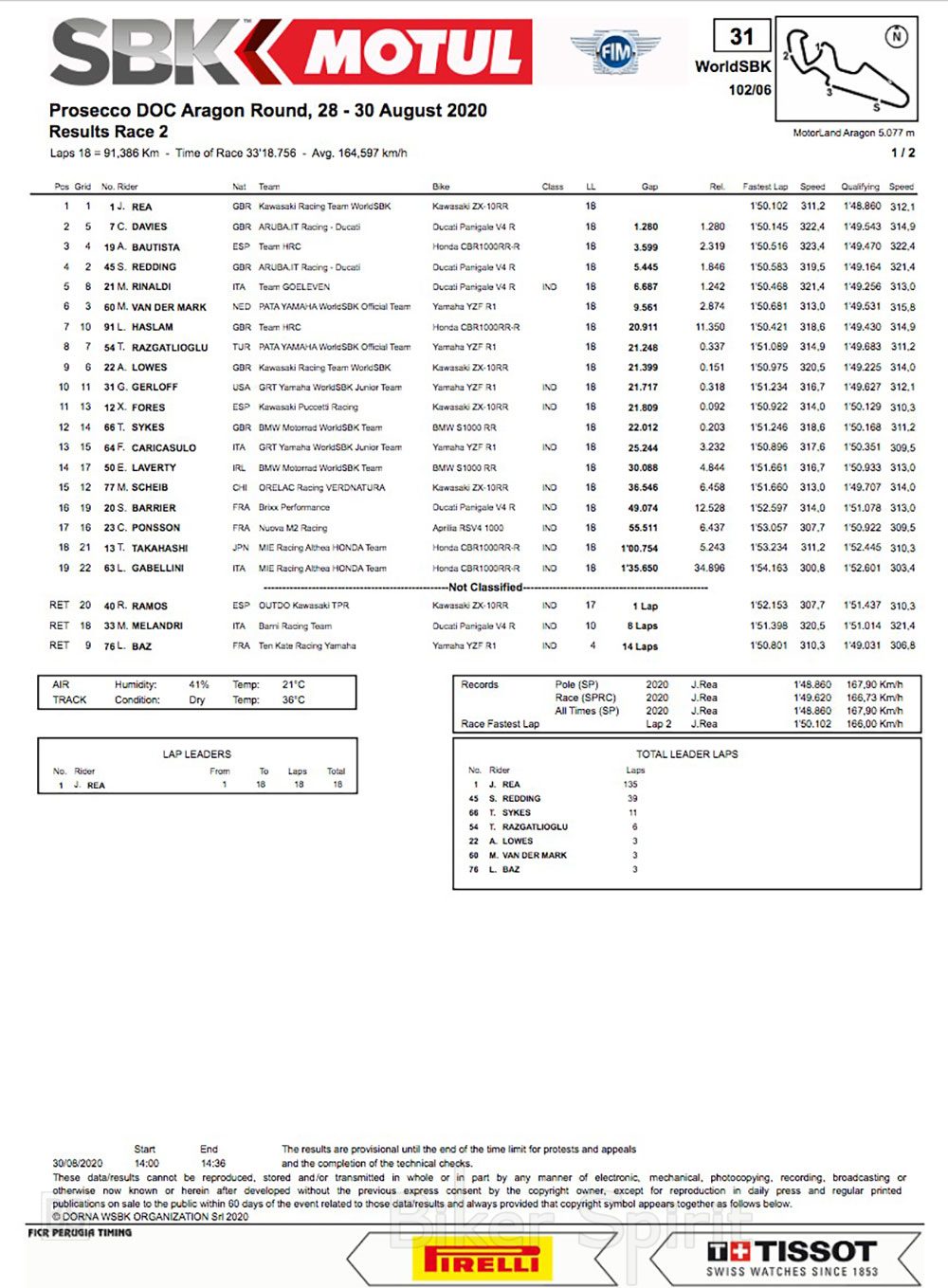 Ήταν μια συναρπαστική μάχη για το Παγκόσμιο Πρωτάθλημα Superbike, καθώς ο Jonathan Rea διατήρησε το προβάδισμά του στο Πρωτάθλημα με διαφορά 10 βαθμών μετά τη νίκη του στον 2ο αγώνα στο MotorLand Aragon, παρά το λάθος που έκανε και έδωσε στους αντιπάλους του την εύκαιρα να τον πλησιάσουν.