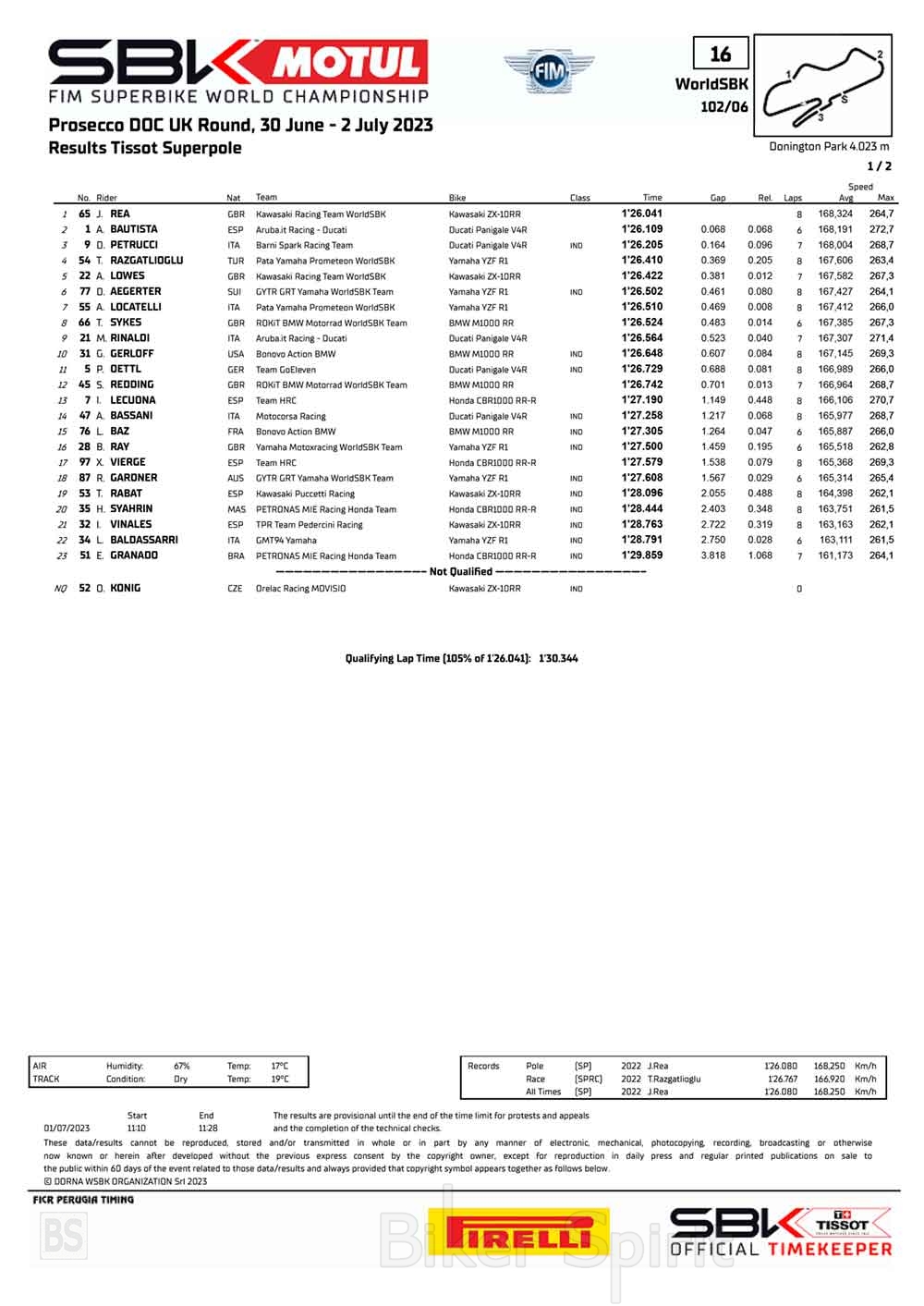 Ο Jonathan Rea κέρδισε την Pole position (Superpole) του Βρετανικού Grand Prix, για τον έκτο γύρο της σεζόν Superbike 2023.