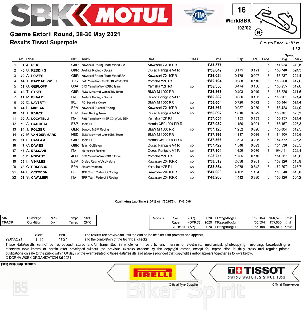 Ο Eugene Laverty (RC Squadra Corse) θα ξεκινήσει 7ος μπροστά απο τον Lucas Mahias (Kawasaki Puccetti Racing) και τον Τίτο Ραμπάτ (Barni Racing Team)!