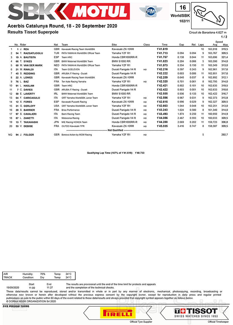 Και οι πέντε κατασκευαστές προκρίνονται στις δύο πρώτες σειρές για τον πρώτο αγώνα του WSBK στην Catalunya, με τον Jonathan Rea να κερδίζει την πρώτη pole position της πίστας αυτής!