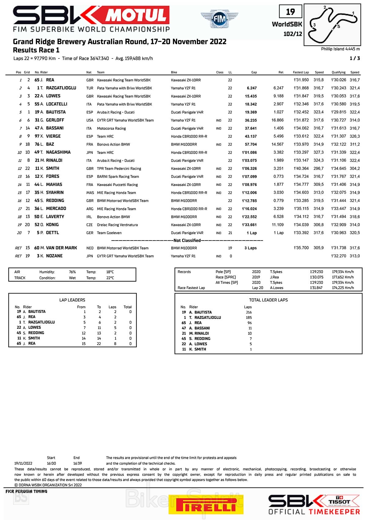 Ο Razgatlioglu κατέκτησε το 81ο βάθρο του και το 28ο της σεζόν του για το 2022, ενώ ο Lowes ανέβηκε στο 32ο βάθρο με την τρίτη θέση παρά την απώλεια χρόνου στα pit stop.