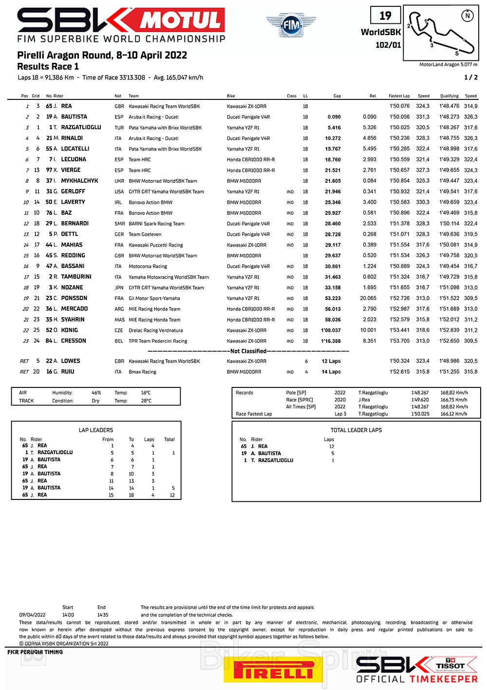 Ένα ακόμα ρεκόρ για τον Rea αφού αυτή είναι η 9η νίκη στο Aragon και η 113η νίκη στην καριέρα του!