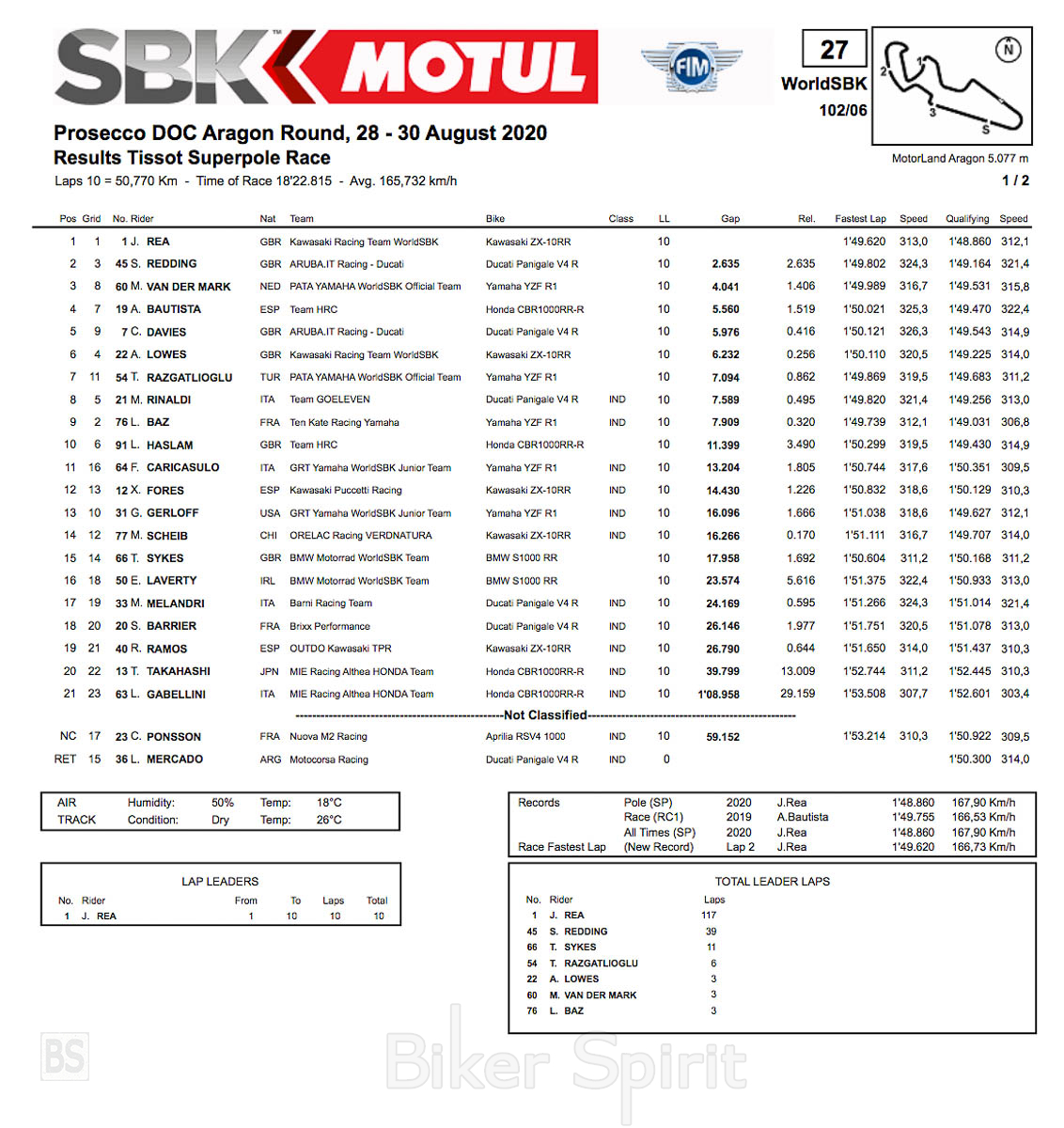 Ο Alvaro Bautista έκανε την καλύτερη θέση εκκίνησης για 2020 καθώς θα ξεκινήσει τον Race 2 από την τέταρτη θέση. Ο Ισπανός αναβάτης πέρασε τον Alex Lowes στο τέλος του αγώνα των 10 γύρων.