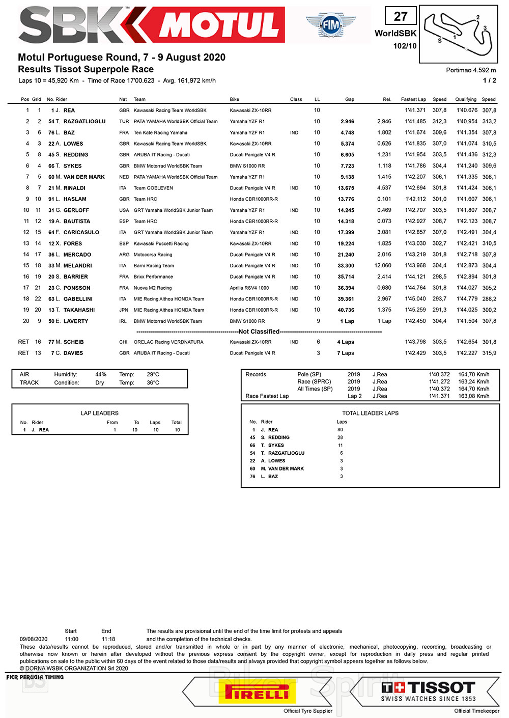 Ο Τούρκος αναβάτης πέρασε αρχικά τον Ρέα στη Στροφή 1, αλλά ανοίχτηκε πολύ, επιτρέποντας στον Ρέα να περάσει και πάλι στη στροφή 2. Ο Ρέα θα έχτισε ένα κενό στον Razgatlioglu, επεκτείνοντας το προβάδισμά του σε κάθε γύρο του αγώνα των 10 γύρων. Ο Razgatlioglu τερμάτισε τον αγώνα στη δεύτερη θέση με τον Loris Baz (Ten Kate Racing Yamaha) να εξασφαλίζει το βάθρο του WorldSBK από το 2014.
