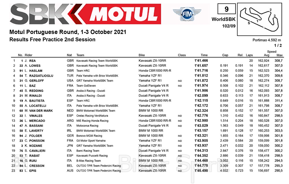 Στην 4η θέση του FP2 τέλειωσε ο Toprak Razgatlioglu (Pata Yamaha Brixx WorldSBK), όπως και στο FP1, αλλά τέλειωσε στην 5η θέση της πρώτη ημέρας!