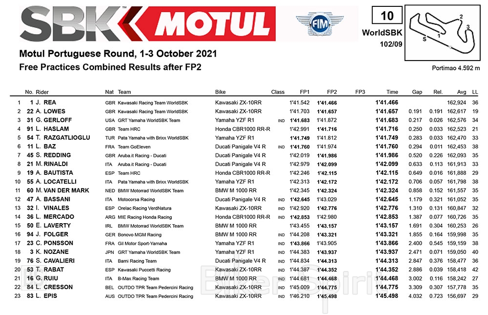 Στην 5η θέση του FP2 τέλειωσε ο Αμερικανός Garrett Gerloff (GRT Yamaha WorldSBK Team), χωρίς να βελτιώσει το χρόνο του, έτσι με το χρόνο από το FP1 είναι στην 3η θέση της ημέρας!