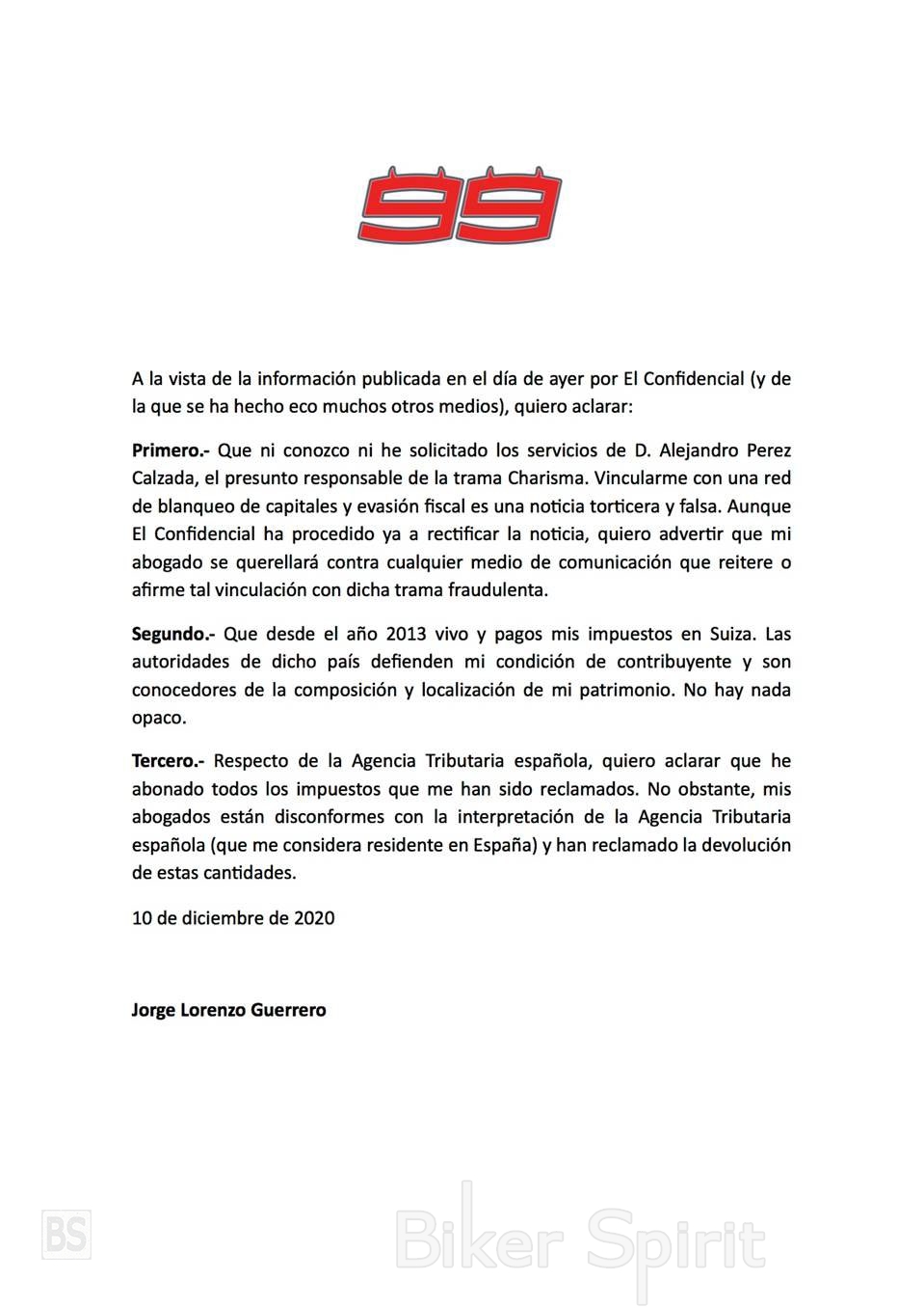 Ο Jorge Lorenzo διαψεύδει ότι διέπραξε φοροδιαφυγή με επίσημη ανακοίνωση