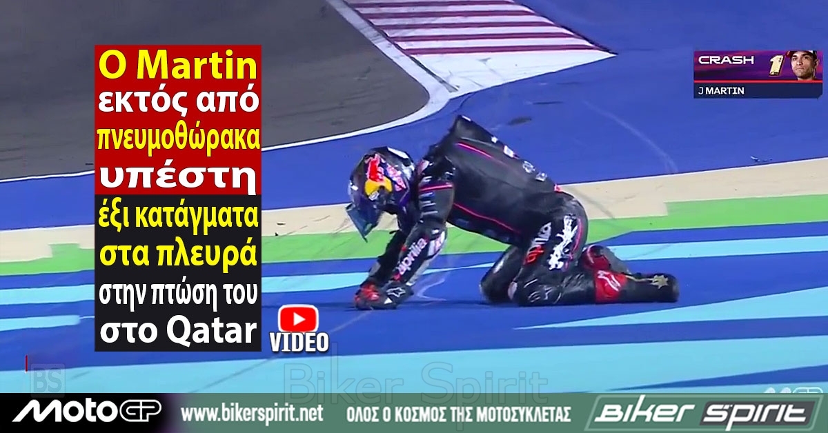 Ο Jorge Martin υπέστη νέο τραυματισμό αυτή την Κυριακή στο Κατάρ, μετά την πτώση του, ο παγκόσμιος πρωταθλητής κατέληξε με πνευμοθώρακα, ενώ αργότερα σε νέα ενημέρωση, ο οδηγός βρέθηκε να έχει έξι σπασμένα πλευρά.