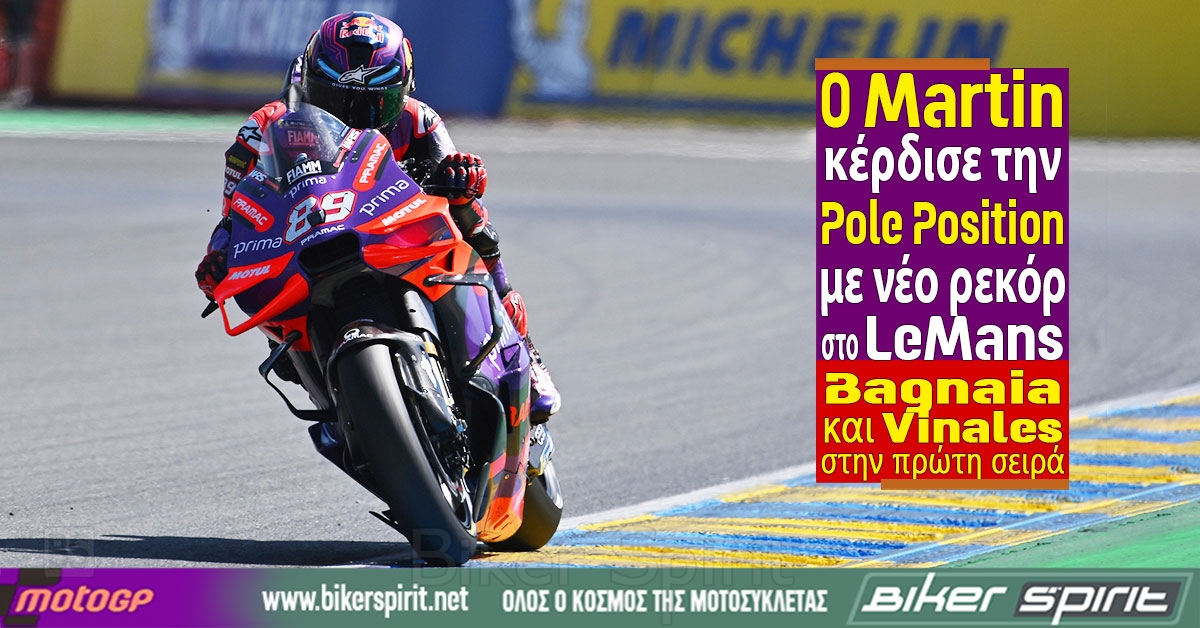 Ο Jorge Martin κέρδισε την Pole Position με εκπληκτικό νέο ρεκόρ στο Le Mans – Bagnaia και Vinales στην πρώτη σειρά μετα από ένα Q2 πτώσεων – Αποτελέσματα