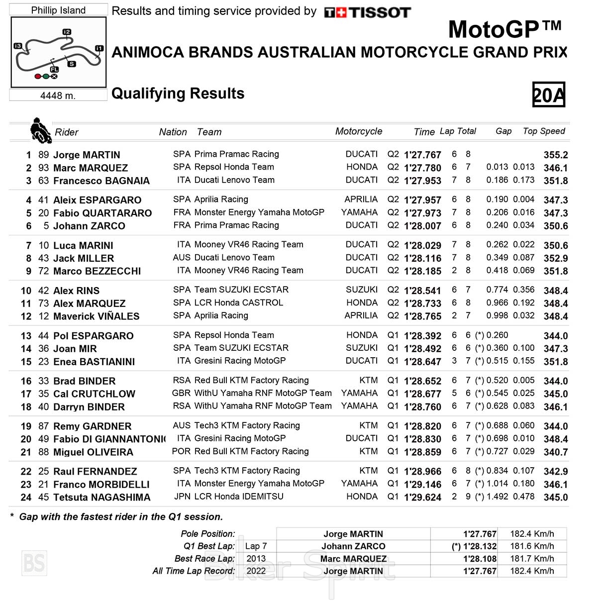 Ο Jorge Martin κέρδισε την Pole position με νέο ρεκόρ στο Philip Island – Ducati, Honda, Aprilia και Yamaha στο Top 5 – Αποτελέσματα