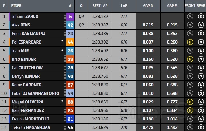 Στην 4η θέση ανοίγοντας την δεύτερη σειρά θα ξεκινήσει το πρώτο Aprilia με τον Aleix Espargaro, μπροστά από τον πρωτοπόρο της βαθμολογίας Fabio Quartararo, φέρνοντας έτσι σε 3 συνεχόμενες θέσεις τους τρεις κυριότερους διεκδικητές του πρωταθλήματος!