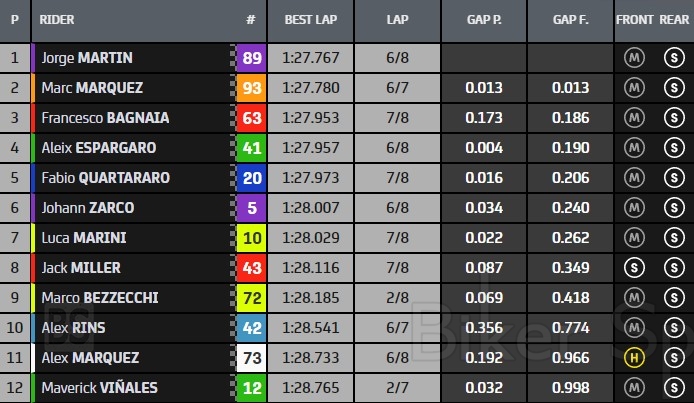 Στην τρίτη σειρά έχουμε τρία Ducati με την 7η θέση να έχει ο Luca Marini, μπροστά από τον Jack Miller που βρίσκεται στην 8η θέση και τον Marco Bezzecchi που κλείνει την τρίτη σειρά στην 9η θέση!