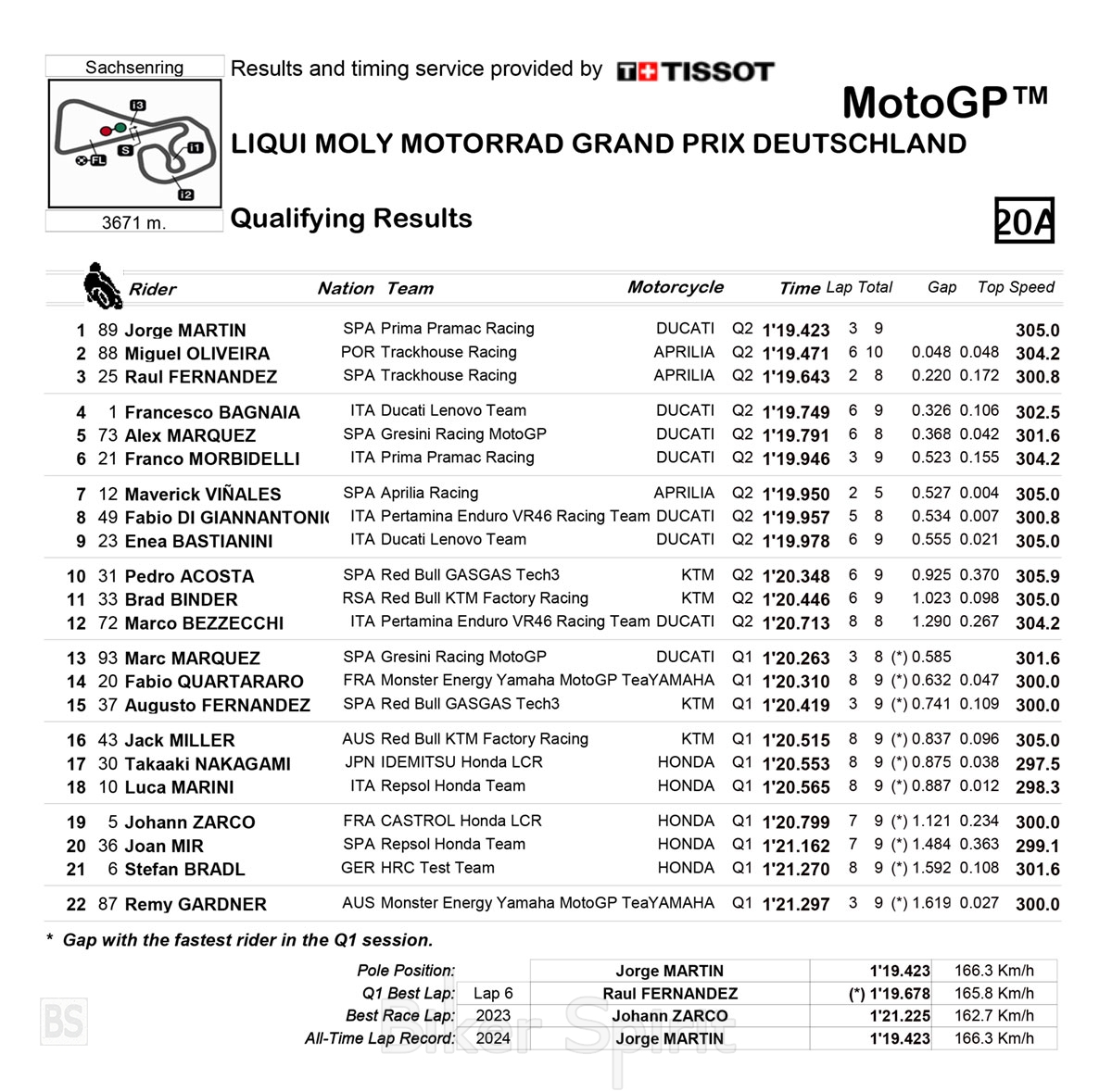 O Jorge Martin κέρδισε την Pole position με νέο ρεκόρ στο Sachsenring – Oliveira και Raul Fernandez στην πρώτη γραμμή – Αποτελέσματα