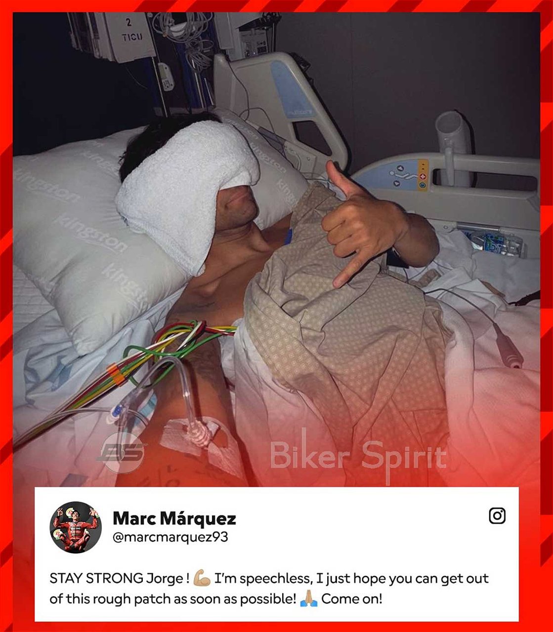 Η Aprilia αργότερα ανέφερε ότι έπρεπε να υποβληθεί σε παροχέτευση θώρακος (σωληνάκι για να βγουν τα υγρά από τον πνεύμονα) και ότι ο Jorge θα πρέπει να παραμείνει υπό παρακολούθηση στο ιατρικό κέντρο για αρκετές ημέρες.