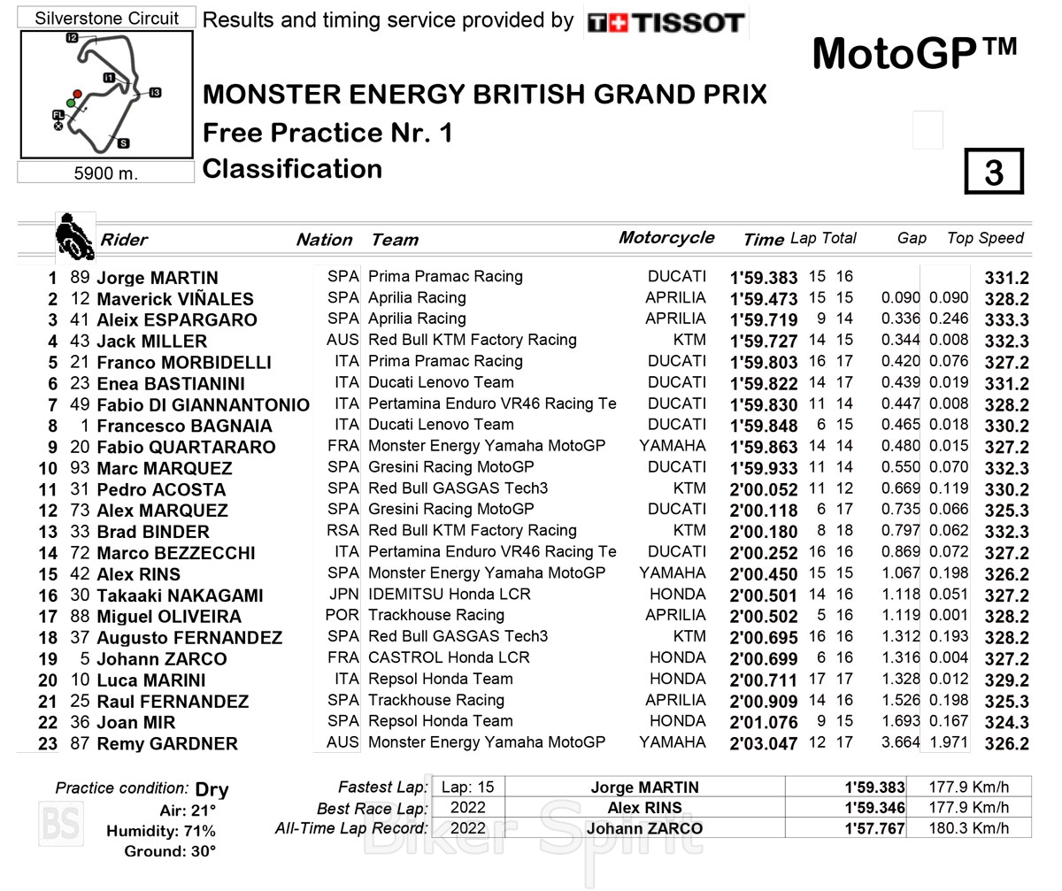 Ο Jorge Martin ταχύτερος στα πρώτα ελεύθερα δοκιμαστικά FP1 στο Silverstone – Αποτελέσματα