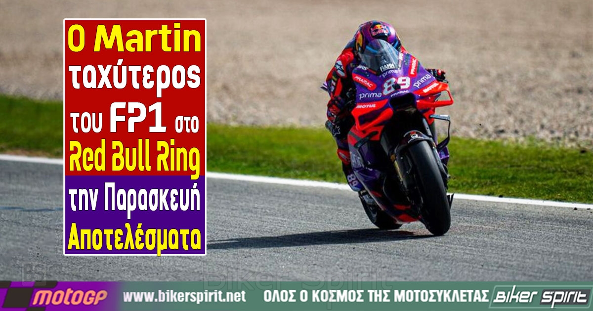 Ο Jorge Martin ταχύτερος στην πρώτη ελεύθερη δοκιμή FP1 στο Red Bull Ring – Αποτελέσματα