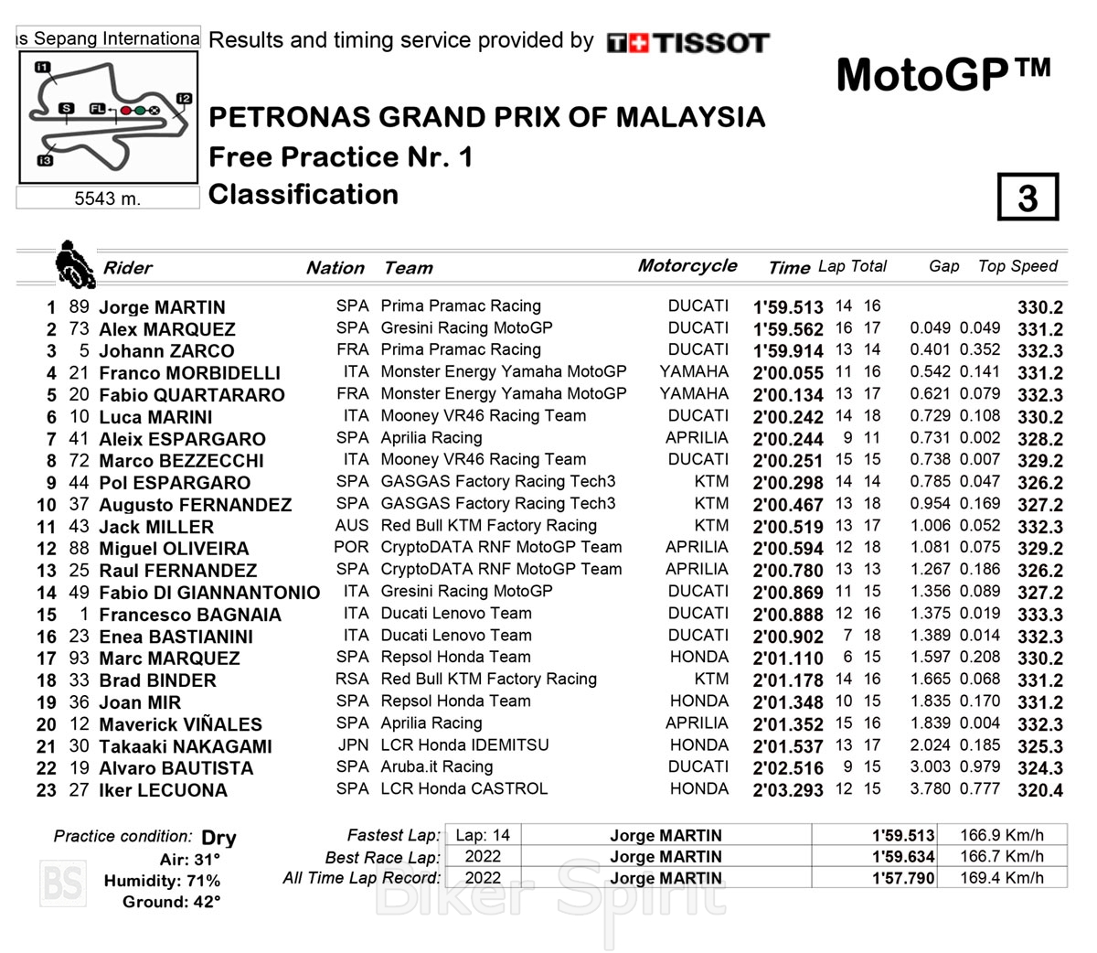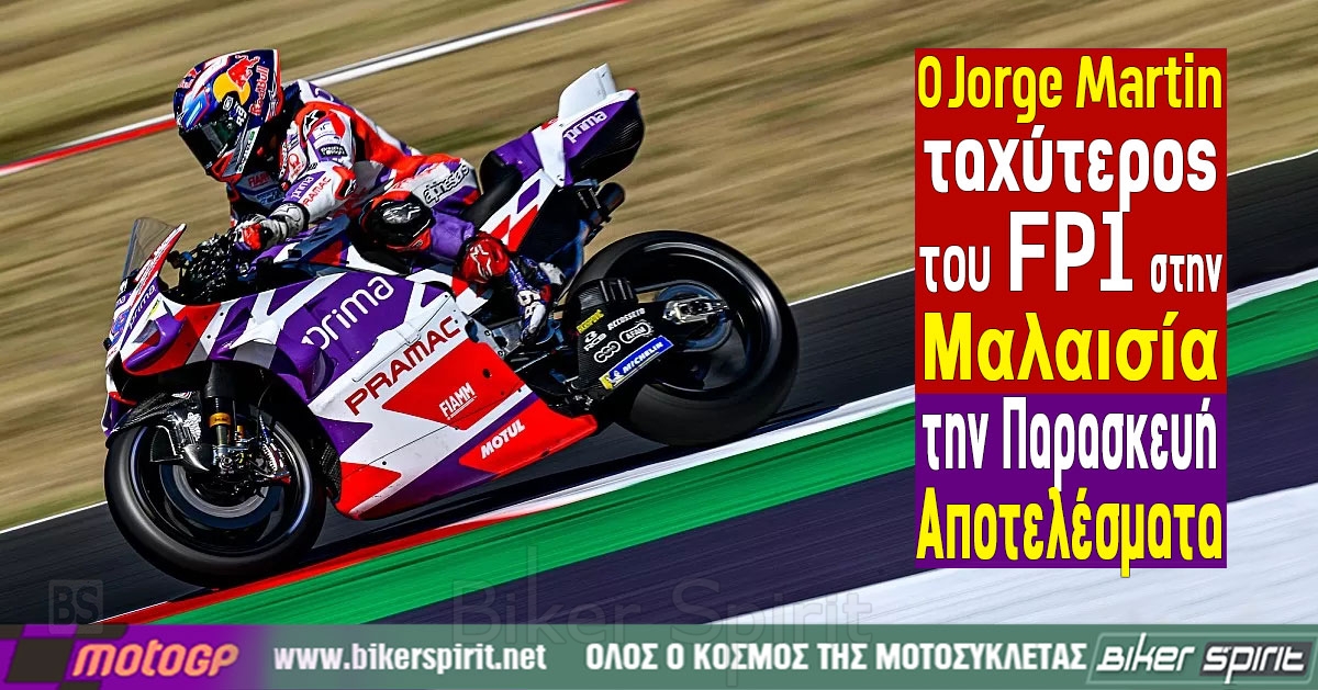 Ο Jorge Martin ταχύτερος του FP1 την Παρασκευή στην Μαλαισία – Αποτελέσματα