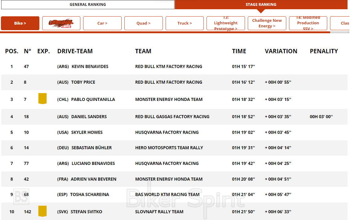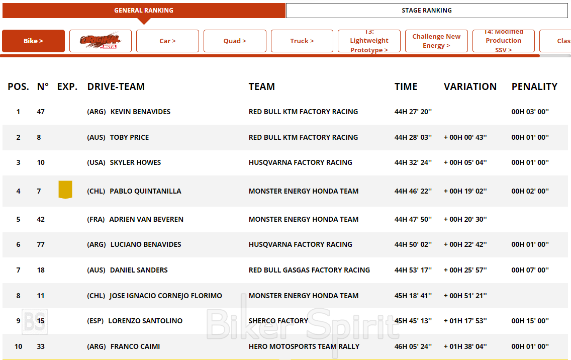 Μια νίκη ειδικής στο Dakar του 2023 δεν ήταν ποτέ πιο σημαντική από την τελευταία, καθώς οι 3 πρώτοι στη γενική κατάταξη απείχαν μόλις 91 δευτερόλεπτα μεταξύ τους, ενώ οι 2 αναβάτες της Red Bull KTM, Kevin Benavides και Toby Price, απείχαν μόλις 12 δευτερόλεπτα.