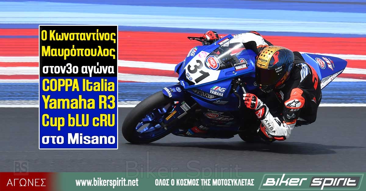 Ο Κωνσταντίνος Μαυρόπουλος στον 3ο αγώνα COPPA Italia Yamaha R3 Cup bLU cRU στο Misano