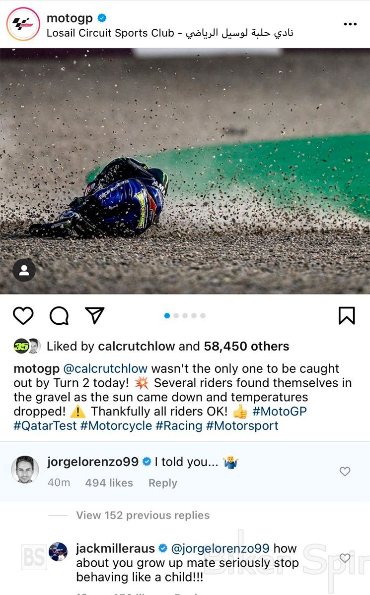 Ο Jack Miller , που είναι προσωπικός φίλος του Crutchlow, δεν δίστασε να απαντήσει απευθείας στον Lorenzo.: «Ποτέ θα μεγαλώσεις φίλε ? σοβαρά , σταματά να φέρεσαι σαν παιδί!!!»