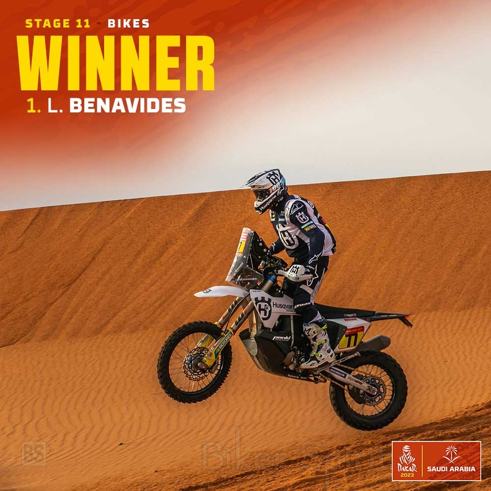 Με την Μαραθώνια ειδική, το Dakar 2023 μπαίνει στην πιο κρίσιμη φάση του, με τον οδηγό της Husqvarna, Luciano Benavides, να παίρνει τη νίκη στην 11η ειδική, και ο ομόσταυλός του, Skyler Howes να βρίσκεται ξανά στο προβάδισμα στη γενική κατάταξη.