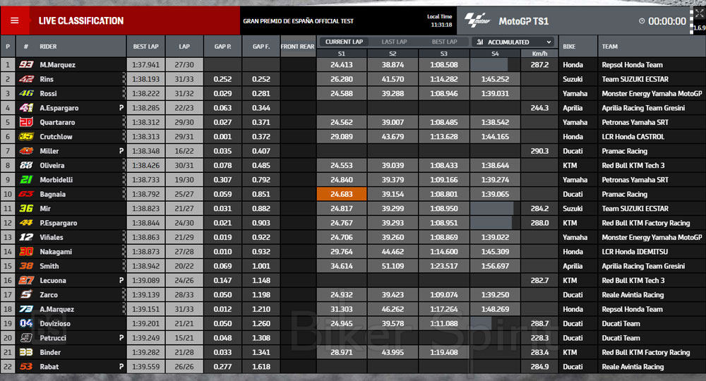 Στην 11η θέση ο John Mir ενώ στην 12η θέση ο οδηγός της KTM Pol Espargaro, μπροστά από τον Vinales στην 13η θέση.