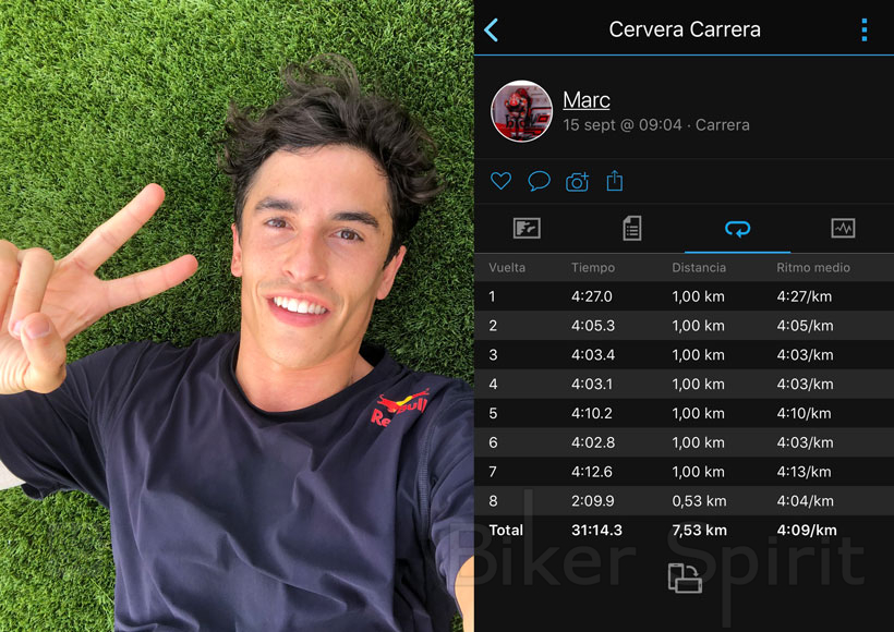 Ο οκτώ φορές Παγκόσμιος Πρωταθλητής δημοσίευσε μια φωτογραφία στις σελίδες του στα μέσα κοινωνικής δικτύωσης σήμερα το πρωί για να δείξει ότι επιτέλους βγαίνει για τρέξιμο στην πόλη της Cervera, ολοκληρώνοντας 7,53 χιλιόμετρα σε 31 λεπτά και 14 δευτερόλεπτα – δεν αποτελεί έκπληξη, αυτός ο ρυθμός.