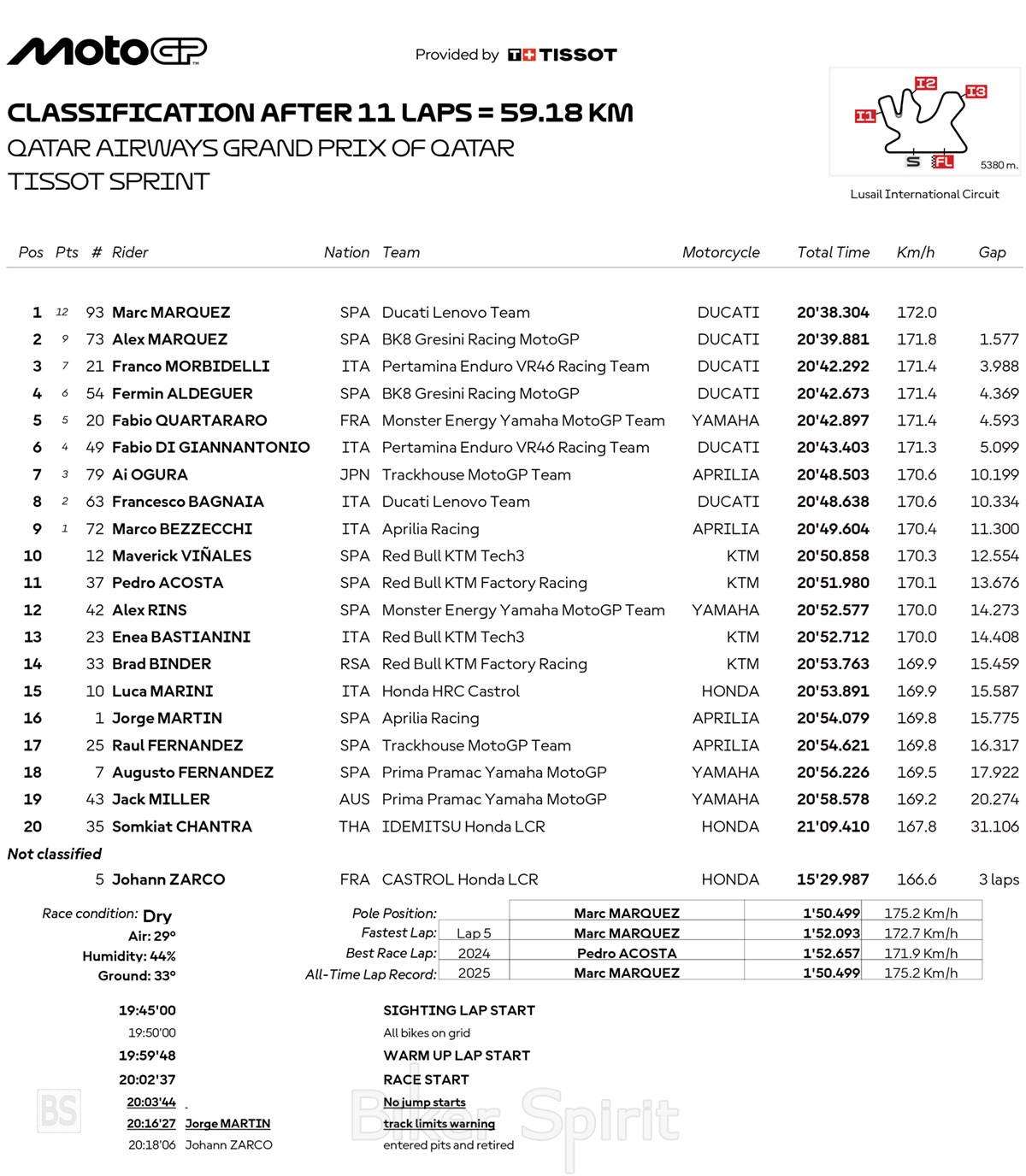 O Marc Marquez κέρδισε τον αγώνα SPRINT στο Qatar με τους Alex Marquez και Morbidelli στο βάθρο – Αποτελέσματα