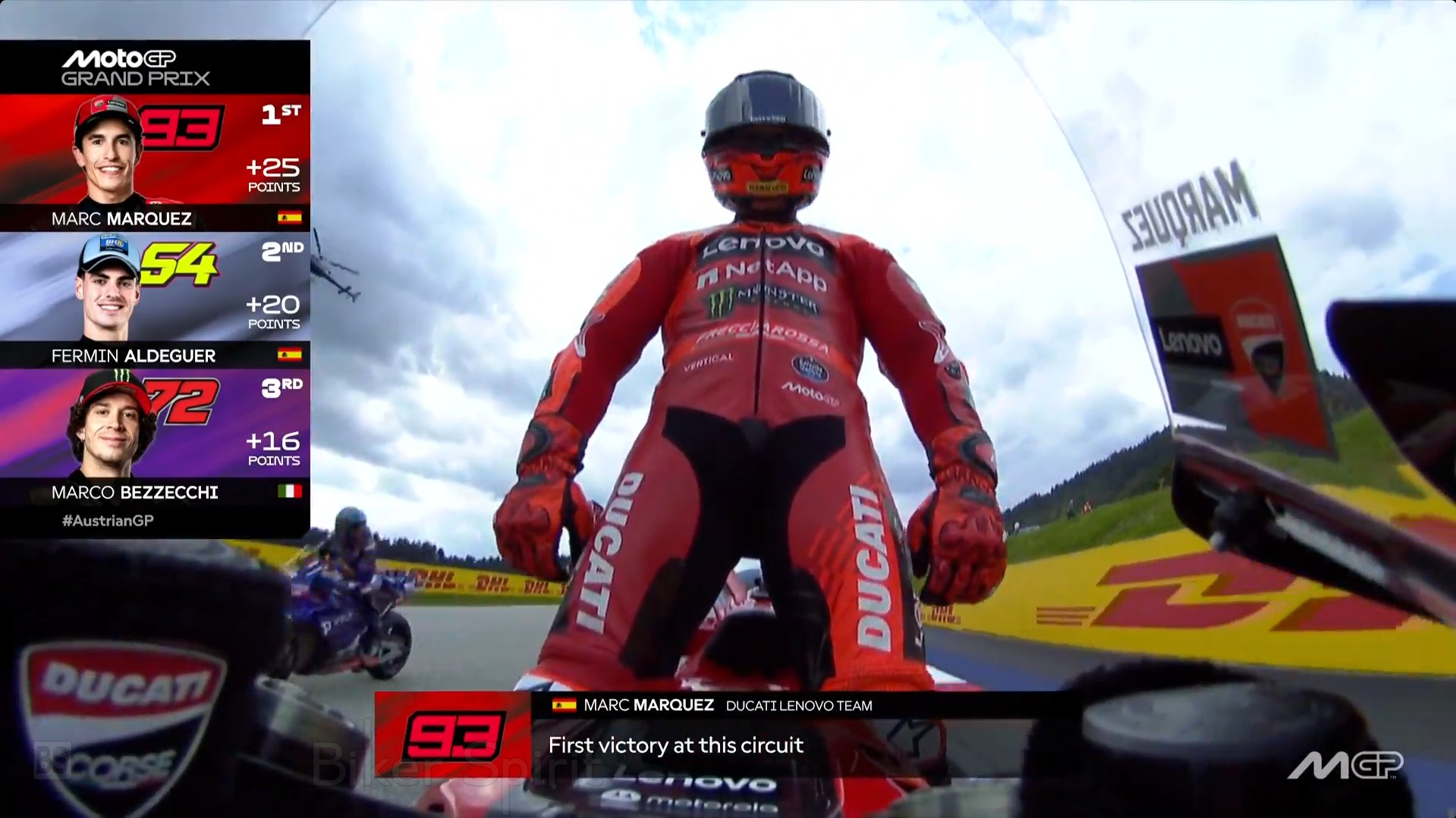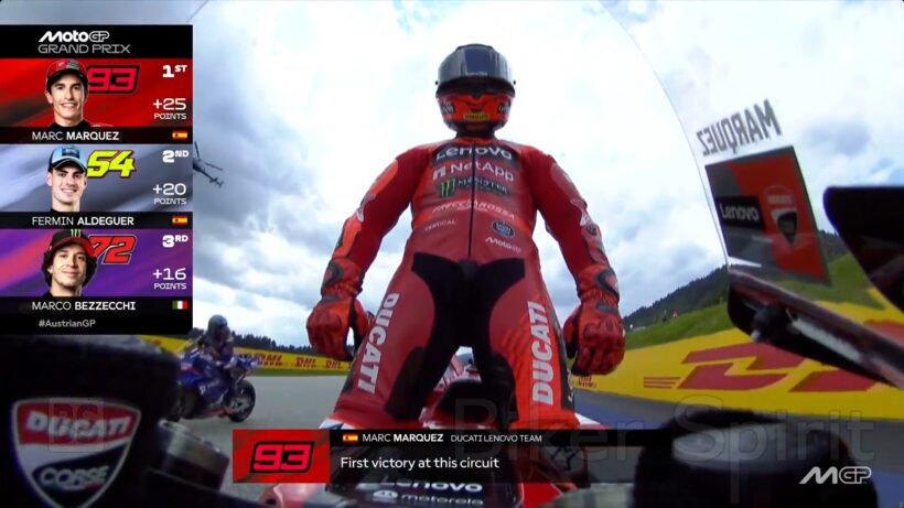 Ο Marc Marquez συνεχίζει την απίστευτη φόρμα του και κατέκτησε άλλη μία νίκη, αυτή τη φορά στο Red Bull Ring, φτάνοντας τις έξι συνεχόμενες. Ο Ισπανός έδωσε μία ακόμη παράσταση, δείχνοντας την εμπειρία και την αποφασιστικότητά του στο φινάλε ενός έντονου αγώνα.