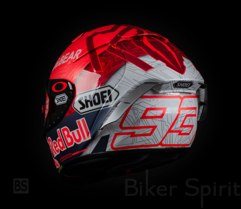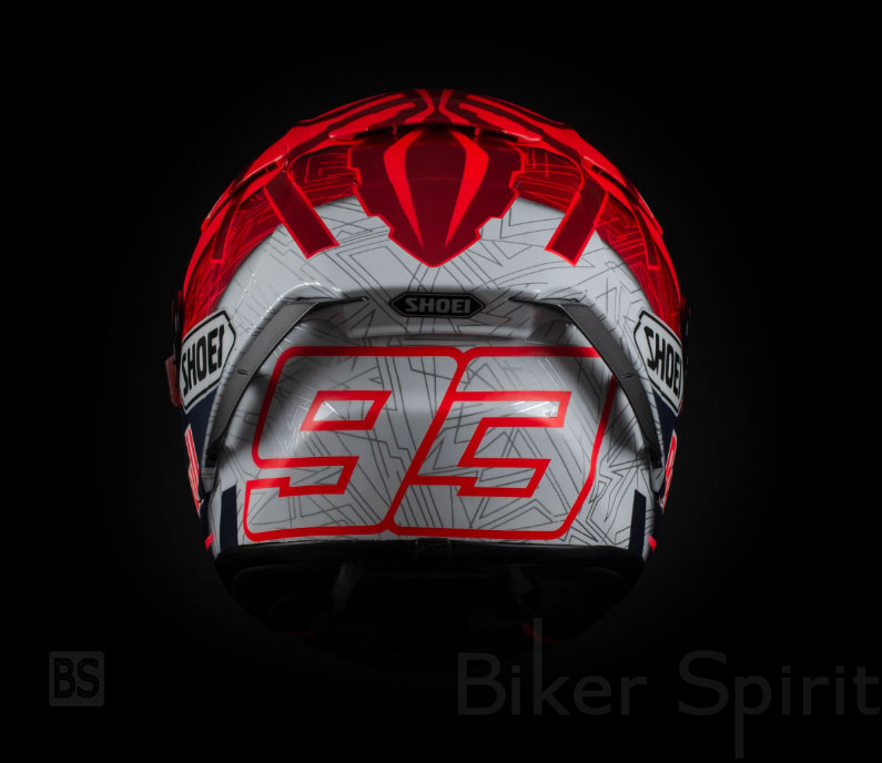 Για μία ακόμα χρονιά, ο Marquez συνεργάστηκε με την Shoei και την Dave Desings για να δημιουργήσει ένα κράνος «απλούστερο, αλλά αυτό σπάει με αυτό που φορούσα μέχρι τώρα». Το νέο κράνος συνεχίζει να διατηρεί τα τρία χαρακτηριστικά του: το 93, το κόκκινο και το μυρμήγκι.
